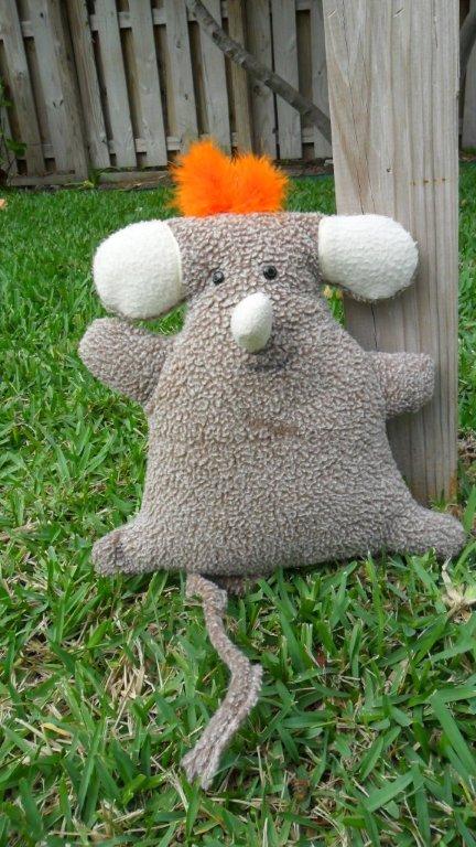 I am so proud of my Mom! She has always sewn things.  When my sister and I were little, we always had matching sundresses- with hats...and our dolls were the best dressed in town...as Mom would make them the coolest clothes! She does the neatest counted cross stitch pieces too- little houses, gnomes, happy little characters with soccer balls or favorite stuffed animals! So one day I saw a woman on Pinterest who makes these neat little critters out of kids drawings...I sent Mom the picture and told her, "Hey this is just like when you made Dain Wearhouse Mouse" - before Disney had thought to make one.  My kids were desperate for a mouse back then!